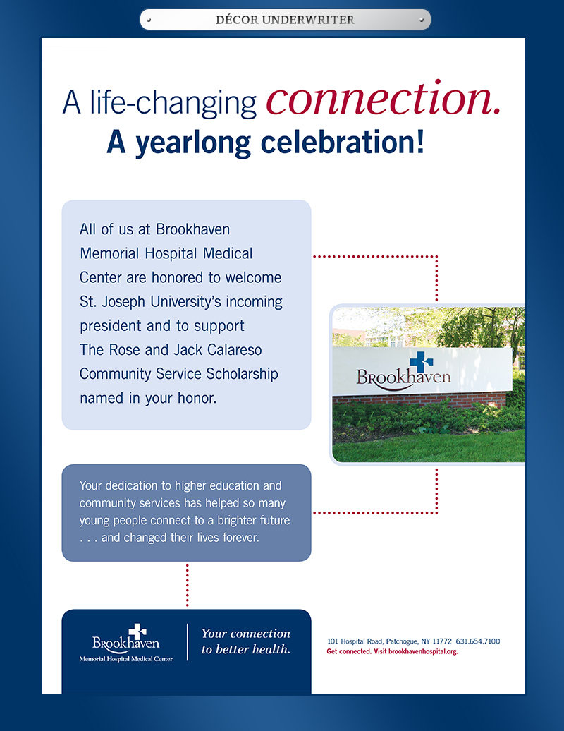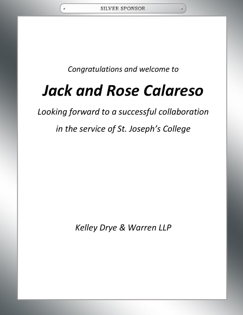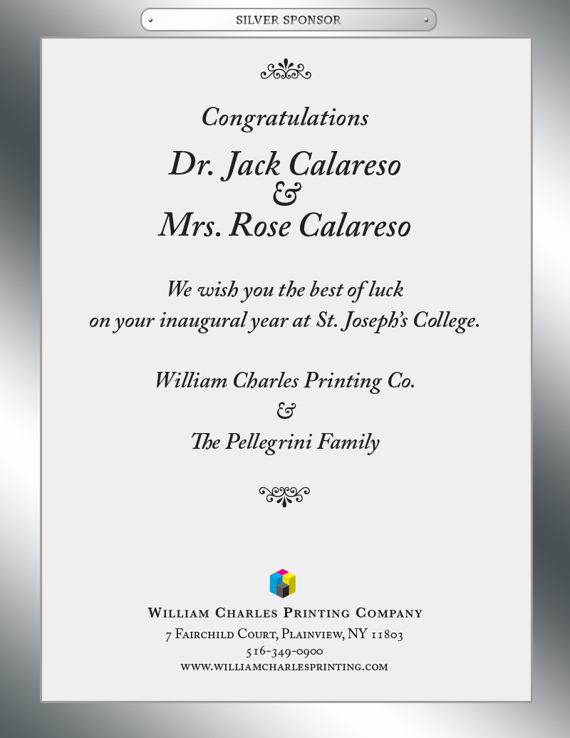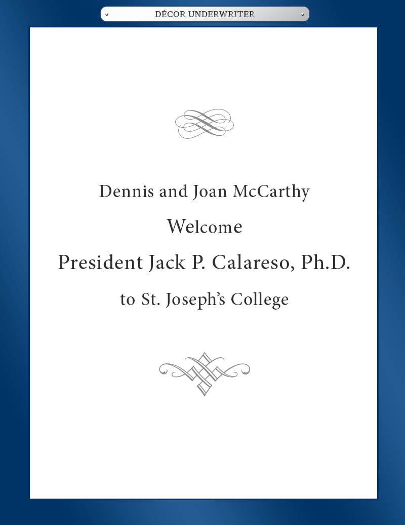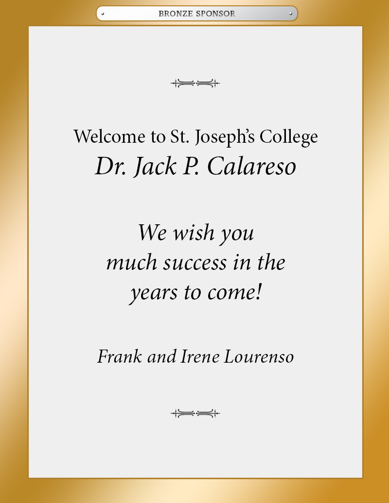 Mrs. Calareso is honored to assume her role as the first “first lady” of St. Joseph’s College. She brings a wealth of experience to this position from her husband’s previous presidencies. Her duties as first lady have included everything from serving midnight breakfasts to students studying for exams, to hosting visiting dignitaries. Alumni visits, attending student activities and participating in community service have all been a part of her life as a presidential spouse these past 15 years. Mrs. Calareso is looking forward to many new opportunities to serve the SJC community.
